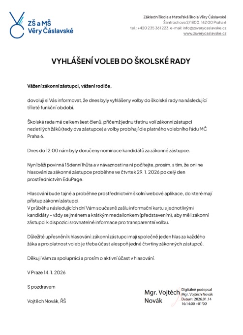 zveřejňujeme důležité informace k nadcházejícím volbám do školské rady.