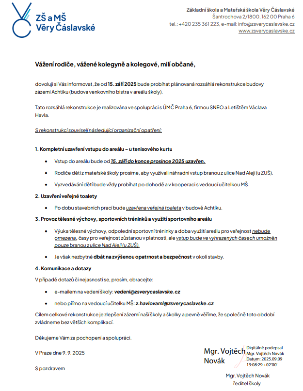 Vážení zákonní zástupci, milí rodiče, milí žáci,